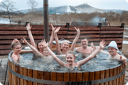 К строительству купелей в нашем банном комплексе мы подошли со всей ответственностью. Нашей задачей было создание именно больших купелей, вода в которых всегда оставалась бы чистой. Мы с справились с ней на отлично!