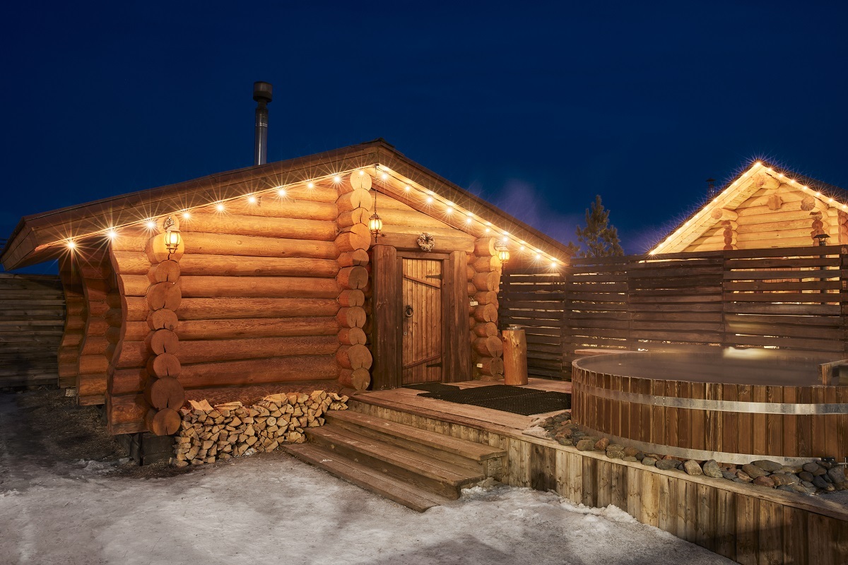 Классические русские бани на дровах, расположенные в лесном массиве. В каждой из них по всему периметру уставлено панорамное остекление, а сами изготовлены из 300-летнего кедра диаметром в 1 метр. В этих банях увеличенные парные со стеклянными порталами и видом на лес и горы. Индивидуальная зона СПА с увеличенной кедровой купелью на 15-17 человек. Просторные и комфортные зоны отдыха с теплыми полами. Авторская мебель изготовлена индивидуально из трехвекового кедра.